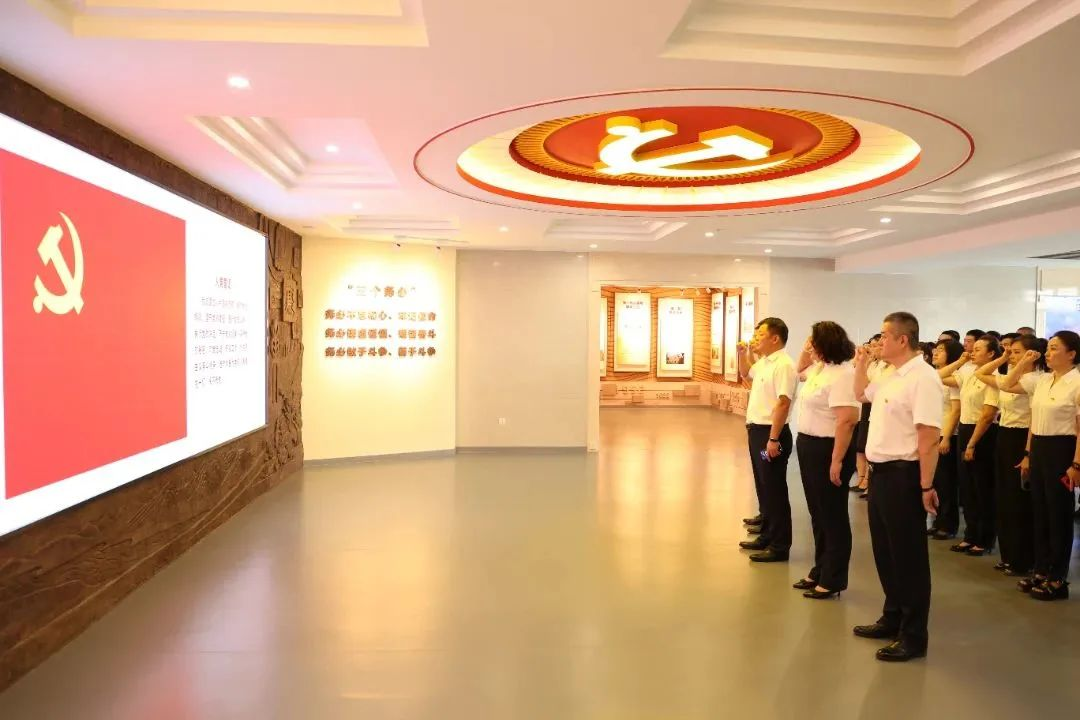 重温入党誓词,牢记初心使命。“我宣誓!我志愿加入中国共产党……”参观结束后,全体党员干部高举右拳,慷慨激昂,面向鲜红的党旗重温入党誓词,重忆入党初心,重新接受党性洗礼。誓言铿锵,丹心闪耀,彰显了对党忠诚,为共产主义事业奋斗终身的决心。