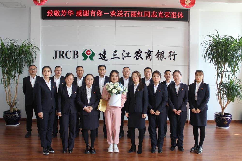 建三江农商银行党委充分肯定了其为建三江农商银行做出的贡献,希望她继续关心、支持建三江农商银行,一如既往的为我行建言献策。同时祝福她永葆年轻的心态,拥有健康的身体,将退休生活演绎的丰富多彩。